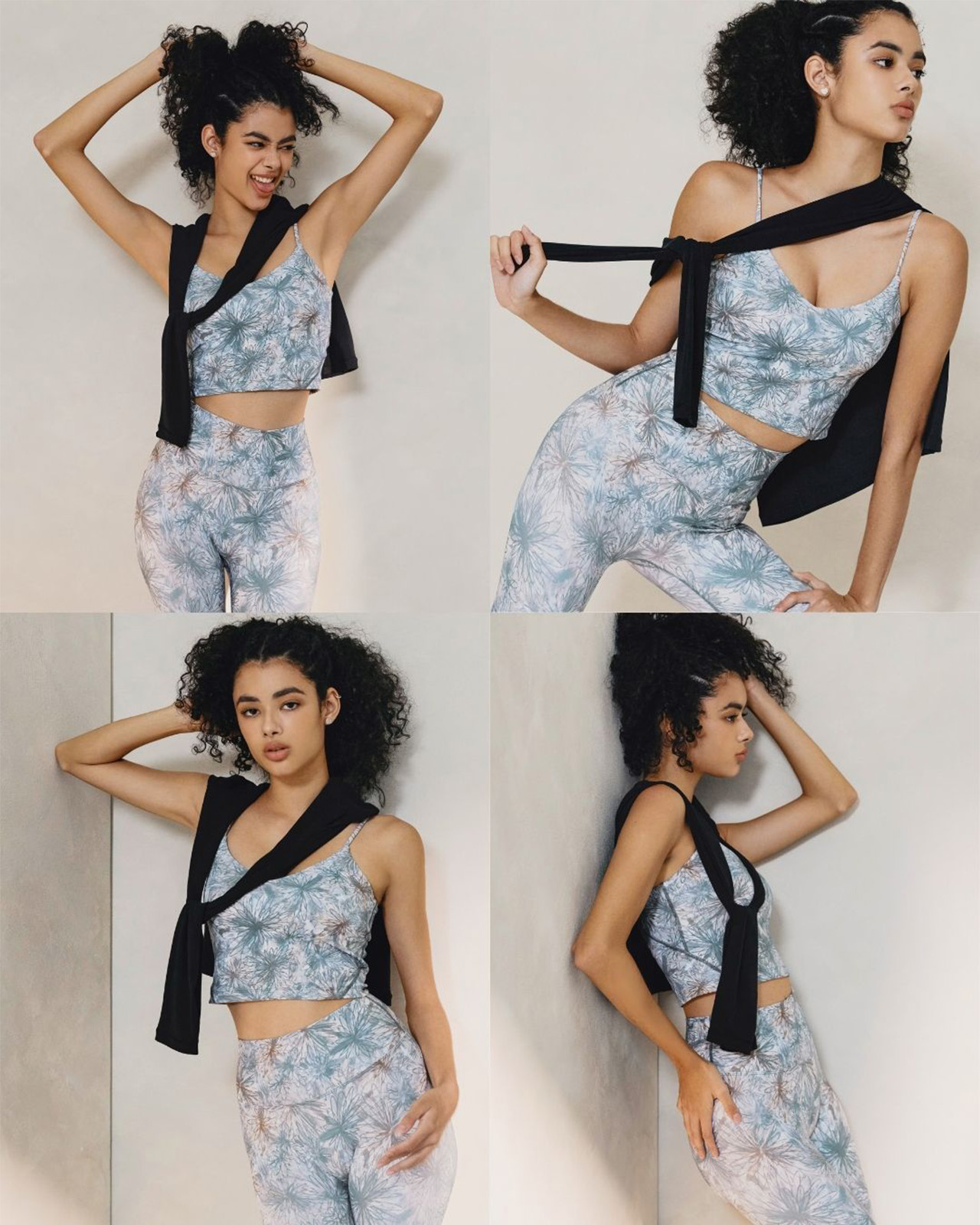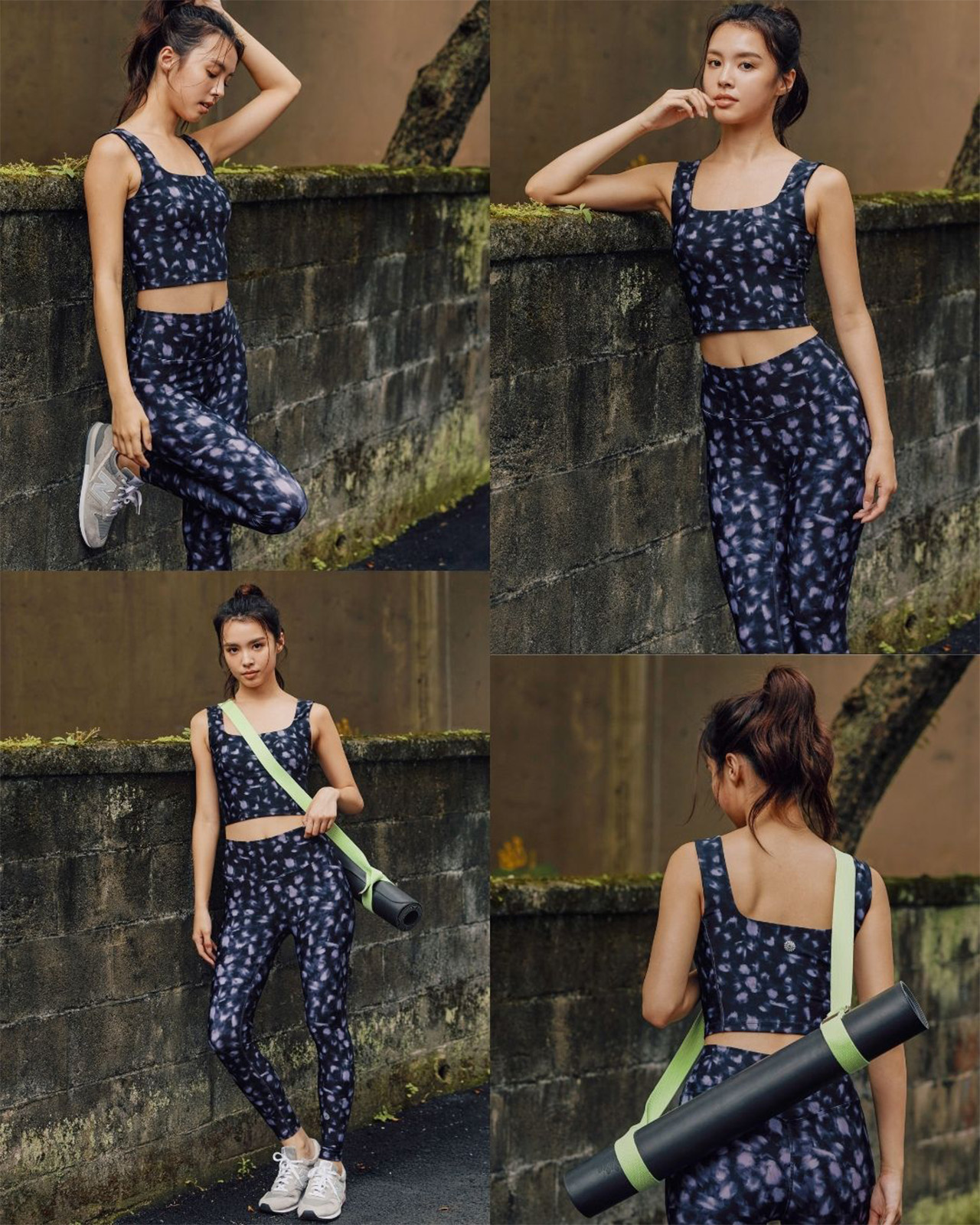 今シーズンのテーマカラーでもあるコーラルブルーや深みのあるパープルやネイビー。空気が澄み渡る穏やかな冬の日に、色とりどりの花々が織りなす世界をイメージしています。淡い色彩の手書き風の花柄やレオパード調の柄は、控えめながら印象的なデザインで、上品でエレガントな大人の女性を演出します。トレンドカラーのモカ・ムースや、アースカラーとも相性が良く、ワークアウト以外でも秋冬コーデのアクセントにも。