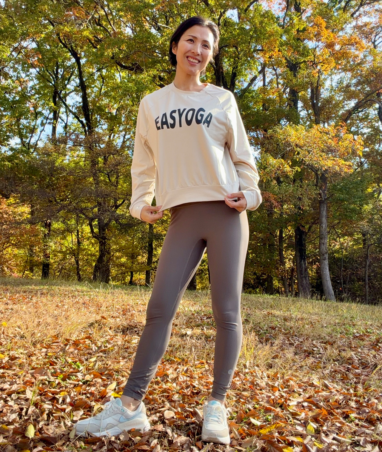 「それどこの?」と必ず聞かれる、冬イチオシのロゴスウェットをセレクト。デザインはもちろん、驚きの伸縮性と軽さ、そして肌触りが素晴らしく着心地が抜群。ヨガのレッスン以外でも、カフェや公園、参観などの子どもの行事など、お出かけ時にも大活躍!オシャレに見えるのにストレスフリーなところが“つい今日も”選んでしまうポイントです。
