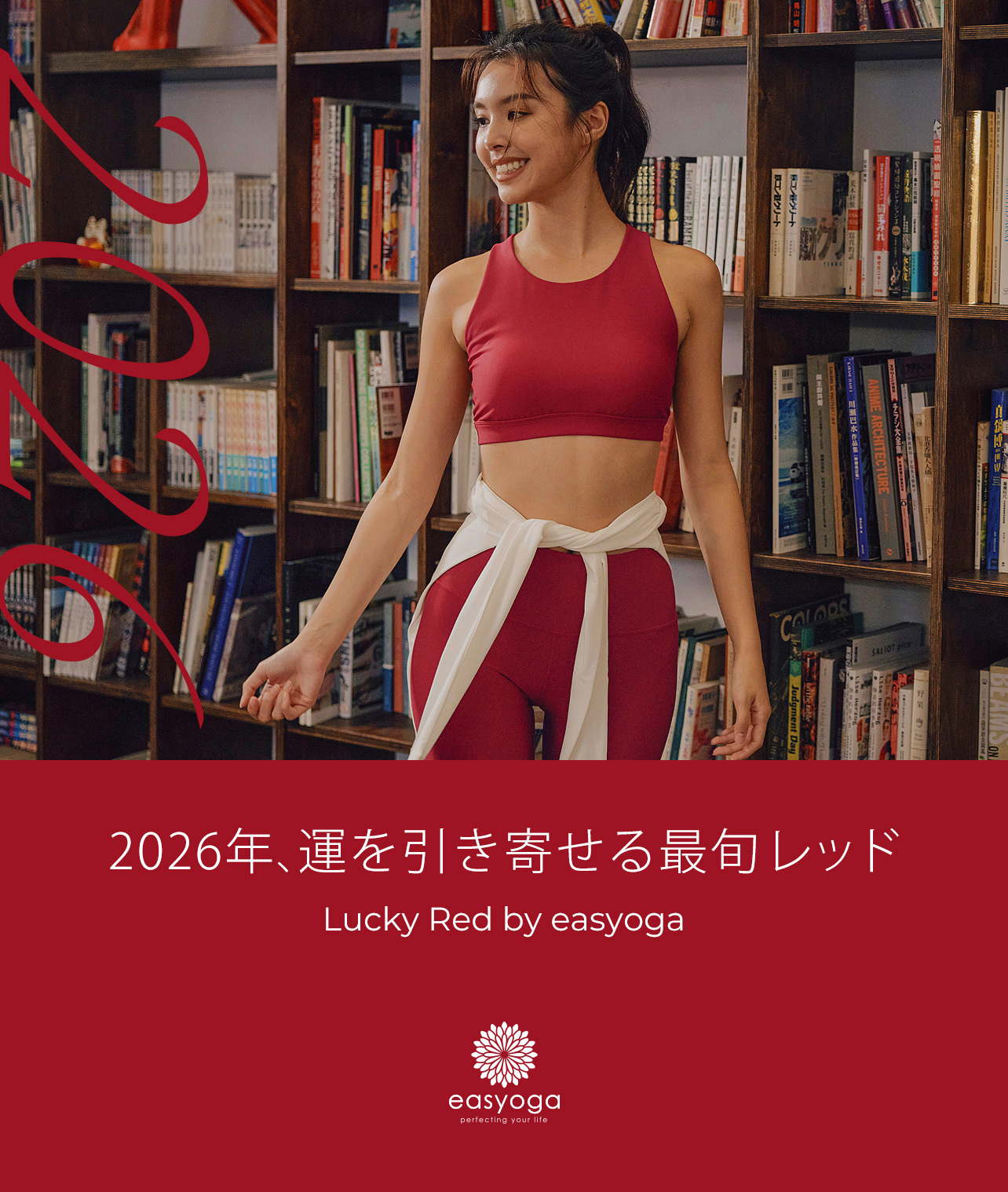 オシャレに開運! - いよいよ2026年がスタート!ラッキーカラーである「レッド」を取り入れた開運コーデを楽しんでみませんか?情熱や生命力を象徴とする赤は、パワフルさやエネルギッシュさを与えてくれます。easyogaのくすんだ赤色は肌を綺麗に見せてくれる絶妙なカラーで、トレンドのブラウンやアースカラーとの相性も良く、冬の装いが一気に華やぎます。