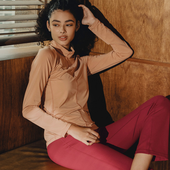 素材によっても表情を変えるeasyogaのカーキ&オレンジアイテムは、大人の装いに程よい抜け感と洒落感を与えてくれる頼れる存在。冬のこなれスポーティスタイルを楽しんでみて。
